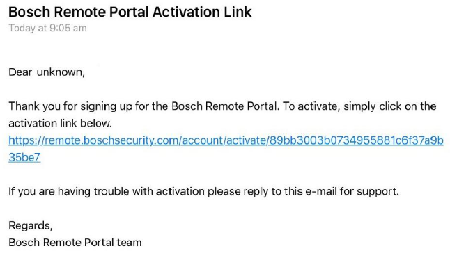 You can create the Remote Portal account in advance from any browser by accessing: https://remote.boschsecurity.com and clicking the Register button.