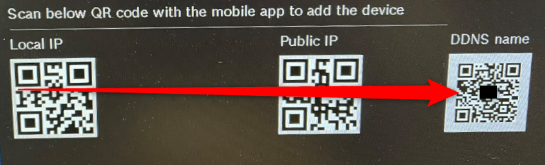Option 1: by scanning the QR code (next to the DDNS name) that appears on the DIVAR screen