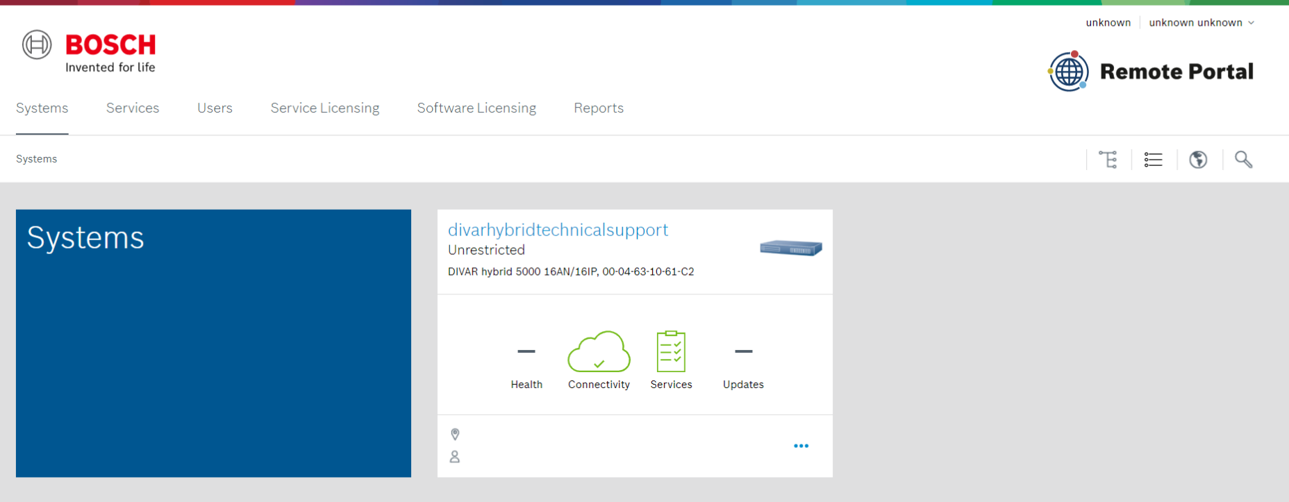 After logging into your Remote Portal account, you should see the DIVAR as connected:Open the image in full screen mode